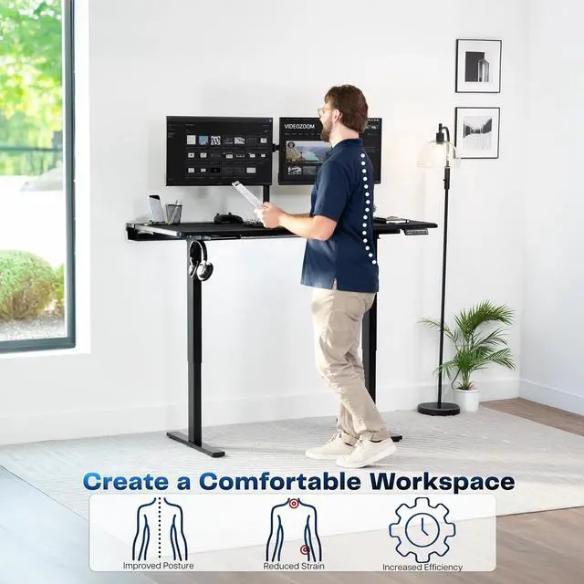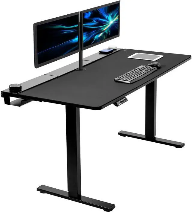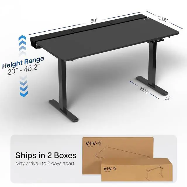 Transform your workstation to accommodate an active work life with the Black 60 x 30 Electric Desk with Concealed Cable Table Top and Full-Size Pad (DESK-KIT-1B6-P3B) from VIVO! Find that healthy balance between sitting and standing throughout the long work day with electric height adjustment, telescopic legs, and a simple push-button controller featuring memory presets. With a frame constructed of solid steel, this desk supports up to 220 lbs and is built to last. The table top features a built-in rear cable management system along with a full-size desk pad for edge-to-edge protection. It comes in 3 sections for easy assembly, and all hardware is provided to get your desk frame put together and installed to your desktop in no time!