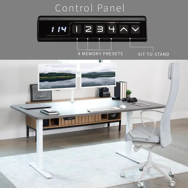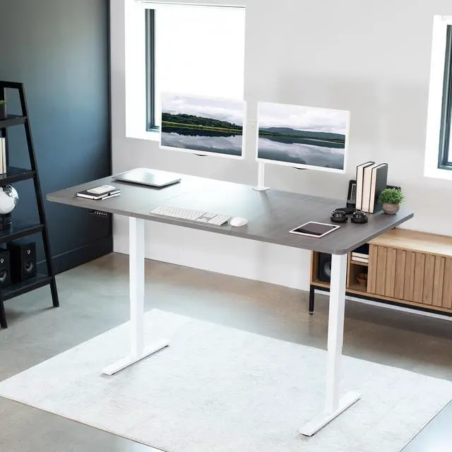 Transform your workstation to accommodate an active work life with the Dark Gray / White 71" x 36" Electric Desk (DESK-KIT-1W7G-36) from VIVO! Finding a healthy balance between sitting and standing throughout the long work day is made possible with electric height adjustment, telescopic legs, and a memory control panel. The spacious table top provides room for dual monitor setups and important supplies so you can organize your workspace to fit your preferred layout. With a frame constructed of solid steel, this desk supports up to 176 lbs and is built to last. All hardware and instructions are provided, so you can get your new workstation assembled and taking you to new heights!