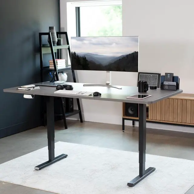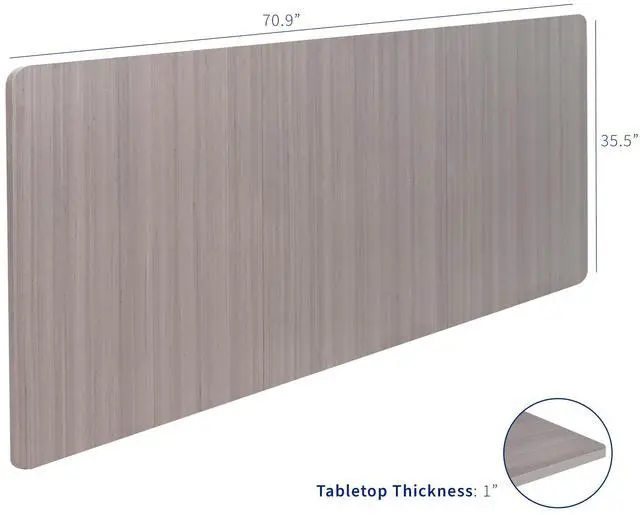 Find the perfect table top solution for your standing desk frame with the Dark Gray 71" x 36" Table Top (DESK-TOP72-36G) from VIVO! Featuring an extra spacious surface in a modern dark gray color, this product provides the finishing touch to your adjustable workstation. Go from sitting to standing with all of your equipment and accessories safely resting on this sturdy platform. Compatible with both manual and electric frames measuring 51 to 70 in length, this extra-wide table top gives you options! Whether you're creating your very first sit-to-stand workstation or you need a replacement part, this desk surface was built to last! All hardware and instructions are provided to get your new platform assembled and attached to your current desk frame in no time!