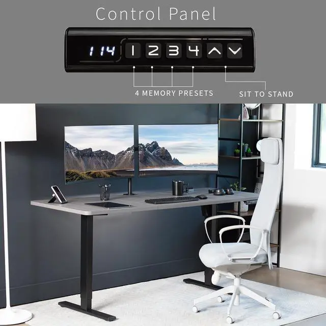 Transform your workstation to accommodate an active work life with the Dark Gray / Black 71" x 30" Electric Desk (DESK-KIT-1B7G) from VIVO! Finding a healthy balance between sitting and standing throughout the long work day is made possible with electric height adjustment, telescopic legs, and a memory control panel. The spacious table top provides room for dual monitor setups and important supplies so you can organize your workspace to fit your preferred layout. With a frame constructed of solid steel, this desk supports up to 176 lbs and is built to last. All hardware and instructions are provided, so you can get your new workstation assembled and taking you to new heights!