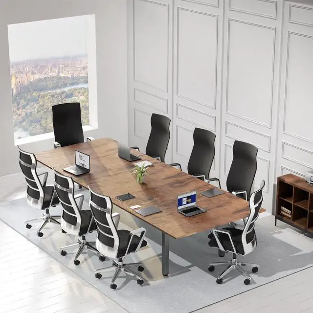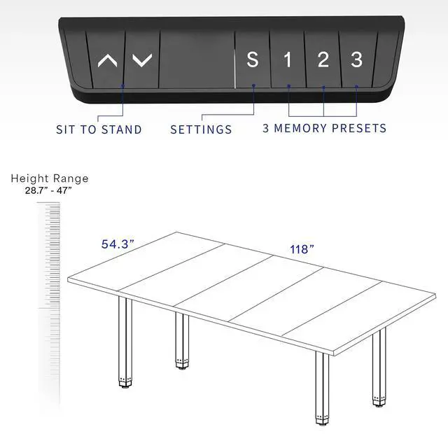 Transform your workstation to accommodate an active work life with the Vintage Brown / Black 118" x 55" Dual Motor Electric 4-Leg Desk with Square Corner Top (DESK-KIT-405N) from VIVO! Finding a healthy balance between sitting and standing throughout the long work day is made possible with electric height adjustment, telescopic legs, and a simple push-button controller featuring memory presets. The extra spacious table provides room for multi-monitor displays and important supplies to create a conference room setup or expansive workstation. With a 4-leg frame constructed of solid steel and sturdy particle board tops, this desk supports up to 195 lbs and is built to last. All hardware and instructions are provided, so you can get your new workstation assembled and experience your very own standing desk in no time!
