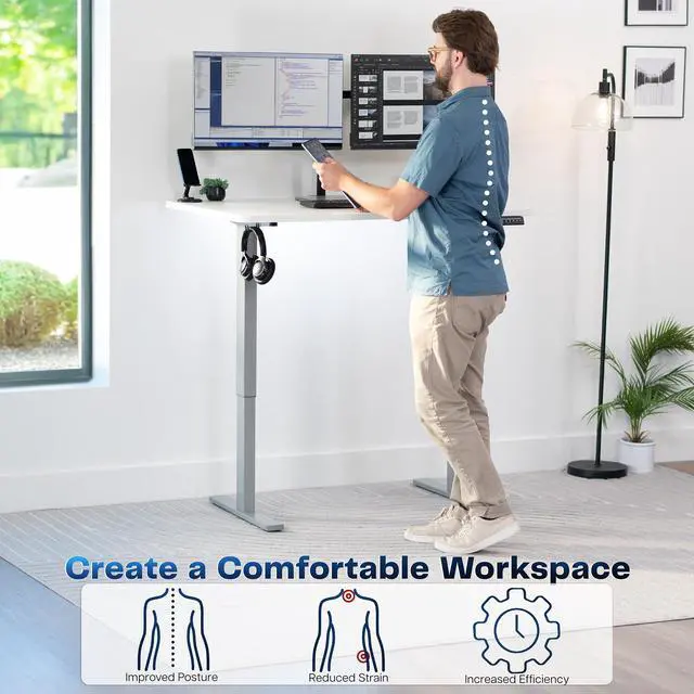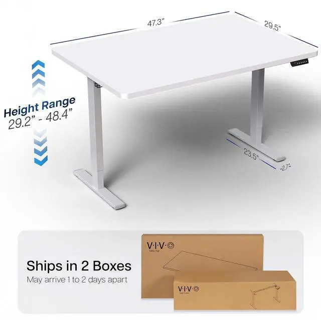 Transform your workstation to accommodate an active work life with the White / Gray 48" x 30" Electric Desk (DESK-KIT-1G5W) from VIVO! Finding a healthy balance between sitting and standing throughout the long work day is made possible with electric height adjustment, telescopic legs, and a simple push-button controller featuring 4 memory presets. The extra deep table top provides room for dual-monitor setups and important supplies so you can organize your workspace to fit your desired layout. With a frame constructed of solid steel, this desk supports up to 220 lbs and is built to last. All hardware and instructions are provided, so you can get your new workstation assembled and experience your very own standing desk in no time!