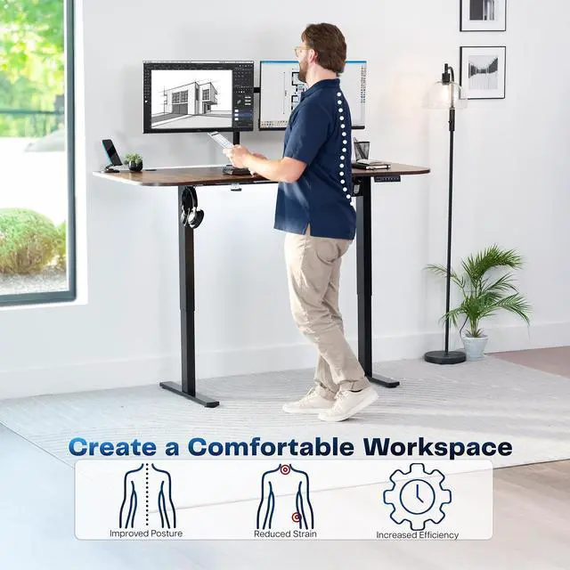 Transform your workstation to accommodate an active work life with the Vintage Brown / Black 63" x 32" Electric Desk (DESK-KIT-1B1N) from VIVO! Find that healthy balance between sitting and standing throughout the long work day with electric height adjustment, telescopic legs, and a simple push-button controller featuring 4 memory presets. With a frame constructed of solid steel, this desk supports up to 220 lbs and is built to last. The table top comes packaged in 3 sections, and all hardware is provided to get your desk frame put together and installed to your desktop in no time!