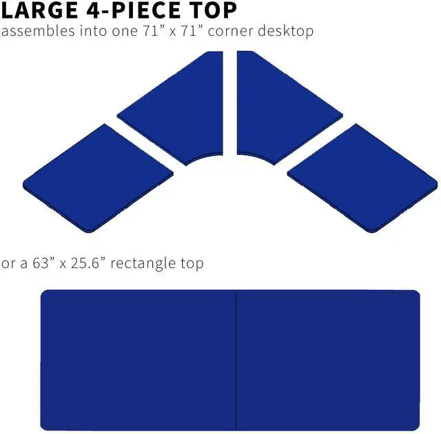Find the perfect table top solution for your L-shaped standing desk frame with Dark Gray 71 x 71 Curved Corner Table Top (DESK-TOP2CG) from VIVO! Featuring 4 sturdy sections of particle board in a modern gray color, this product provides the finishing touch to your adjustable workstation with a curved corner design! Go from sitting to standing with your equipment and accessories safely resting on this spacious surface. Compatible with both manual and electric corner frames that support the large size, this table top gives you options! Whether you're creating your very first sit to stand workstation or you need a replacement part, this desk surface was built to last! Instructions are provided to get your new platform attached to your current desk frame in no time!