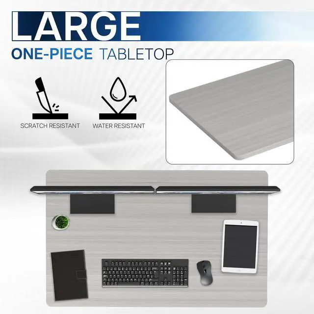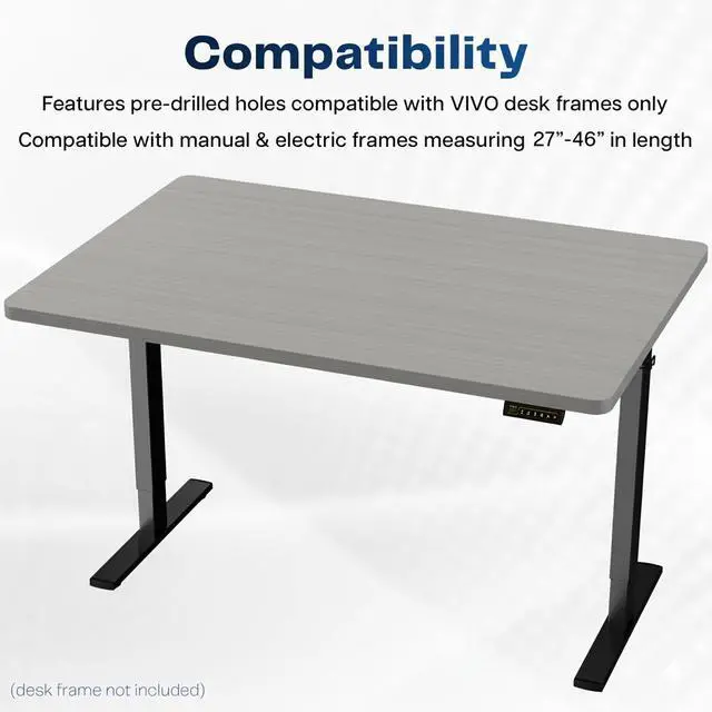 Find the perfect table top solution for your standing desk frame with Dark Gray 48" x 30" Table Top (DESK-TOP48-30G) from VIVO! Featuring a solid particle board surface in a modern gray color, this product provides the finishing touch to your adjustable workstation. Go from sitting to standing with all of your equipment and accessories safely resting on this sturdy surface. Compatible with both manual and electric frames measuring 27 to 46 in length, this extra-wide table top gives you options! Whether you're creating your very first sit-to-stand workstation or you need a replacement part, this desk surface was built to last! All instructions are provided to get your new platform attached to your current desk frame in no time!