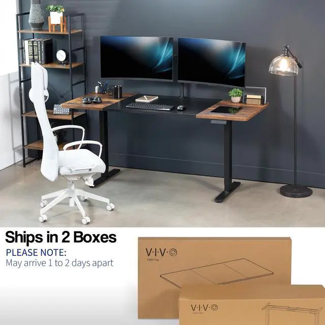 Transform your workstation to accommodate an active work life with the Black & Vintage Brown / Black 71" x 30" Dual Motor Electric Desk (DESK-KIT-E2B7BN) from VIVO! Finding a healthy balance between sitting and standing throughout the long work day is made possible with electric height adjustment, telescopic legs, and a push-button control panel featuring 3 memory presets. The spacious, extra-deep table top provides room for multi-monitor setups and important supplies so you can organize your workspace to fit your preferred layout. With a frame constructed of solid steel, this desk supports up to 220 lbs and is built to last. All hardware and instructions are provided, so you can get your new workstation assembled and taking you to new heights!