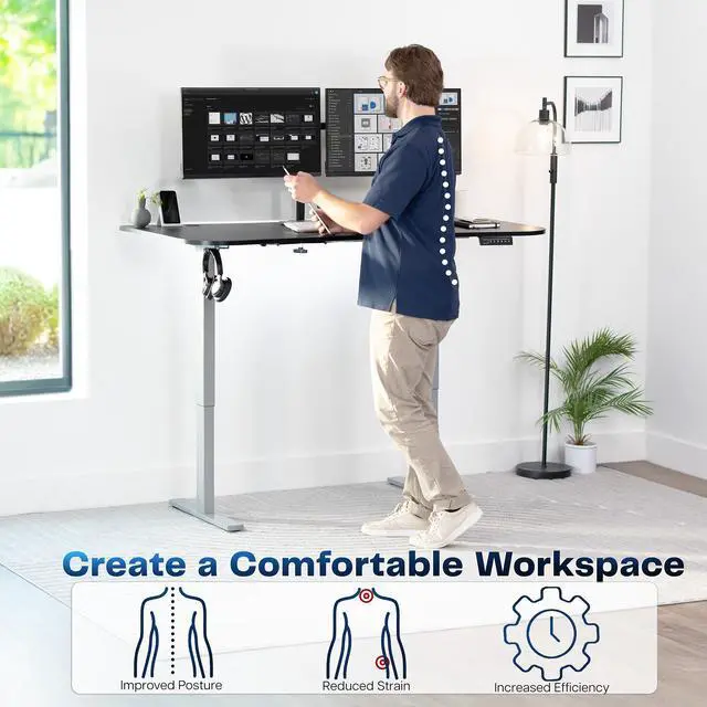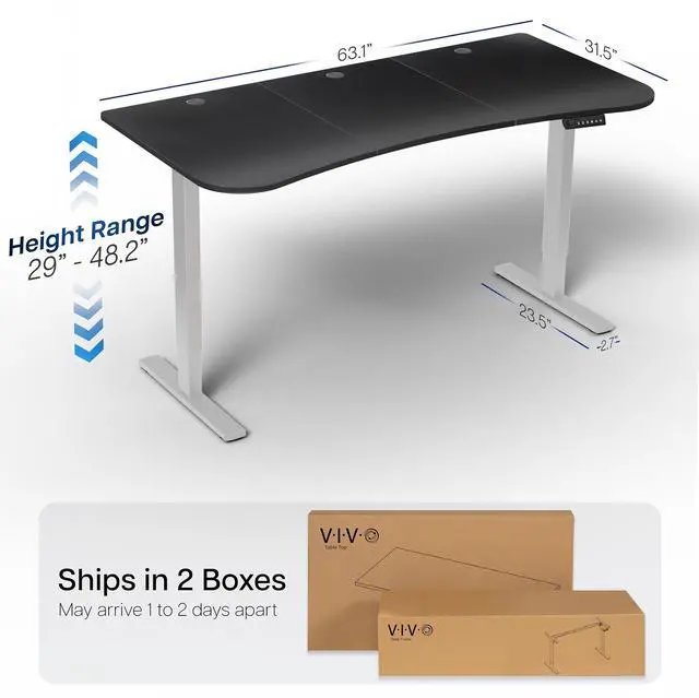 Transform your workstation to accommodate an active work life with the Black Carbon Fiber / Gray 63" x 32" Electric Desk (DESK-KIT-1G1R) from VIVO! Find that healthy balance between sitting and standing throughout the long work day with electric height adjustment, telescopic legs, and a simple push-button controller featuring 4 memory presets. With a frame constructed of solid steel, this desk supports up to 220 lbs and is built to last. The table top comes packaged in 3 sections, and all hardware is provided to get your desk frame put together and installed to your desktop in no time!