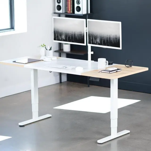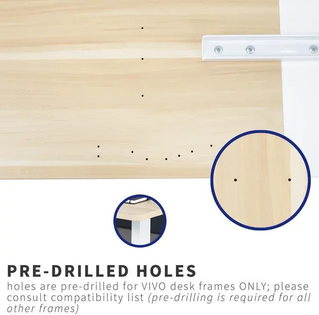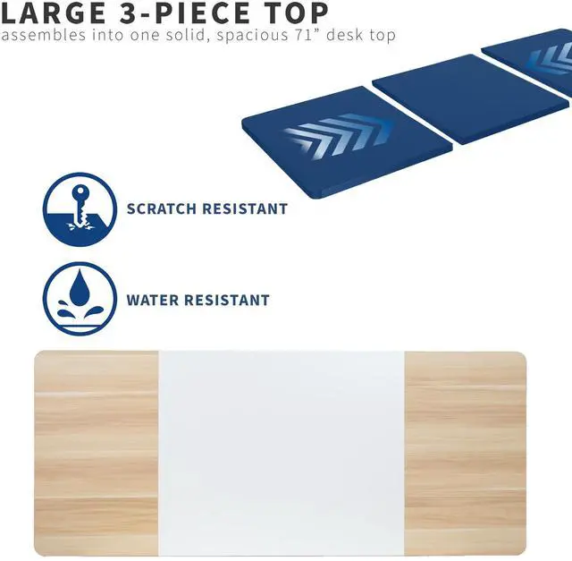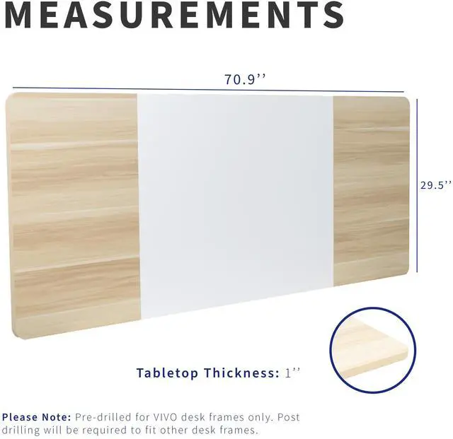 Find the perfect table top solution for your standing desk frame with White & Light Wood 71" x 30" Table Top (DESK-TOP72-30WC) from VIVO! Featuring an extra spacious surface in a clean white and light wood color, this product provides the finishing touch to your adjustable workstation. Go from sitting to standing with all of your equipment and accessories safely resting on this sturdy platform. Compatible with both manual and electric frames measuring 51 to 70 in length, this extra-wide table top gives you options! Whether you're creating your very first sit-to-stand workstation or you need a replacement part, this desk surface was built to last! All hardware and instructions are provided to get your new platform assembled and attached to your current desk frame in no time!