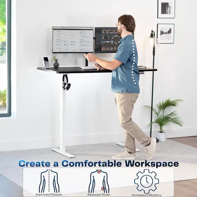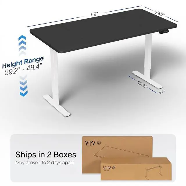Transform your workstation to accommodate an active work life with the Black / White 60" x 30" Electric Desk (DESK-KIT-1W6B-30) from VIVO! Finding a healthy balance between sitting and standing throughout the long work day is made possible with electric height adjustment, telescopic legs, and a memory control panel. The spacious table top provides room for dual monitor setups and important supplies so you can organize your workspace to fit your preferred layout. With a frame constructed of solid steel, this desk supports up to 220 lbs and is built to last. All hardware and instructions are provided, so you can get your new workstation assembled and taking you to new heights!