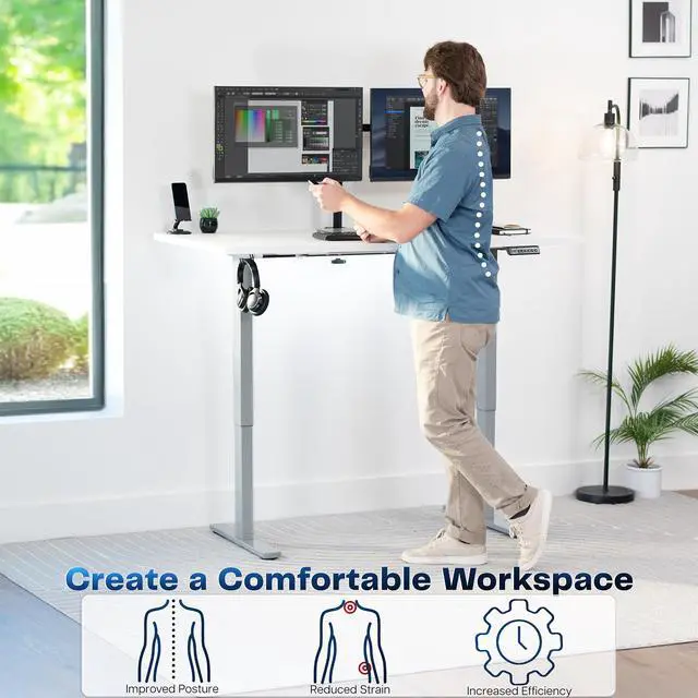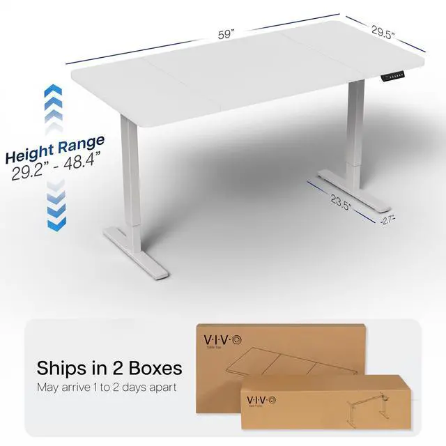 Transform your workstation to accommodate an active work life with the White / Gray 60" x 30" Electric Desk (DESK-KIT-1G6W-30) from VIVO! Finding a healthy balance between sitting and standing throughout the long work day is made possible with electric height adjustment, telescopic legs, and a memory control panel. The spacious table top provides room for dual monitor setups and important supplies so you can organize your workspace to fit your preferred layout. With a frame constructed of solid steel, this desk supports up to 220 lbs and is built to last. All hardware and instructions are provided, so you can get your new workstation assembled and taking you to new heights!