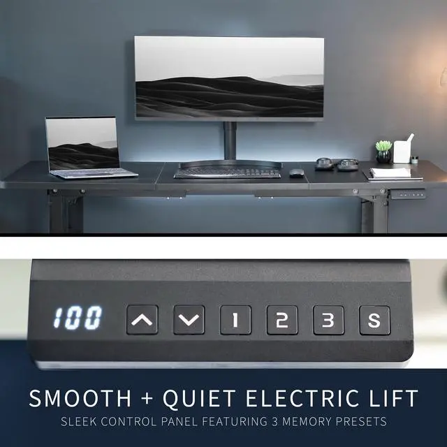 Create your very own active workstation with the Black Electric 4-Leg Dual Motor Desk Frame (DESK-E4B) from VIVO! This powerful and adjustable frame accommodates desktops from 46" x 23" to 84" x 43" in size. Solid steel design with a dual-motor system provides excellent support and stability for up to 220 lbs of weight, effortlessly raising and lowering your workstation with ease. The memory controller saves up to 3 settings so you can quickly find your desired heights. This frames 4-leg support creates a stable setup for your workstation that lasts!
