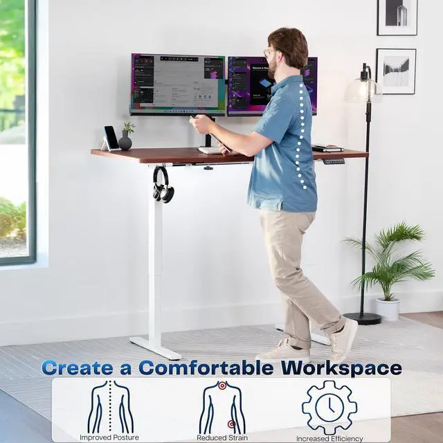 Transform your workstation to accommodate an active work life with the Dark Walnut / White 60" x 30" Electric Desk (DESK-KIT-1W6D-30) from VIVO! Finding a healthy balance between sitting and standing throughout the long work day is made possible with electric height adjustment, telescopic legs, and a memory control panel. The spacious table top provides room for dual monitor setups and important supplies so you can organize your workspace to fit your preferred layout. With a frame constructed of solid steel, this desk supports up to 220 lbs and is built to last. All hardware and instructions are provided, so you can get your new workstation assembled and taking you to new heights!