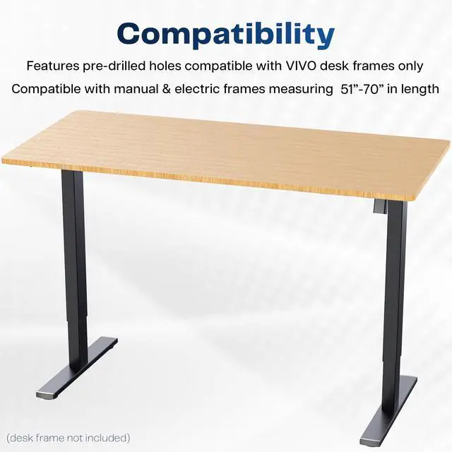 Compatible with both manual and electric frames measuring 51 to 70 in length (desk frame not included)
