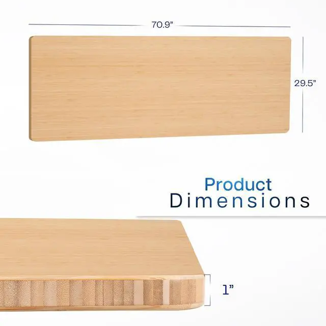 Find the perfect table top solution for your standing desk frame with the Bamboo 71" x 30" Table Top (DESK-TOP71O) from VIVO! Featuring an extra spacious surface made of bamboo, this product provides the finishing touch to your adjustable workstation. Go from sitting to standing with all of your equipment and accessories safely resting on this sturdy platform. Compatible with both manual and electric frames measuring 51 to 70 in length, this extra-wide table top gives you options! Whether you're creating your very first sit-to-stand workstation or you need a replacement part, this desk surface was built to last!