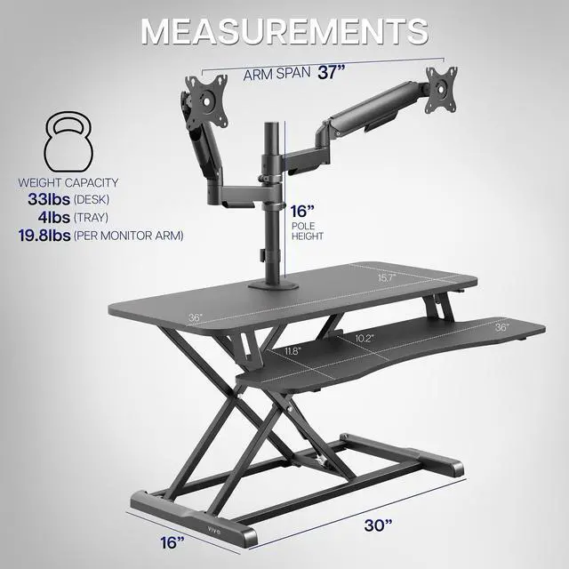 Desk Riser Weight Capacity: 33 lbs (Desktop), 4 lbs (Keyboard Tray)