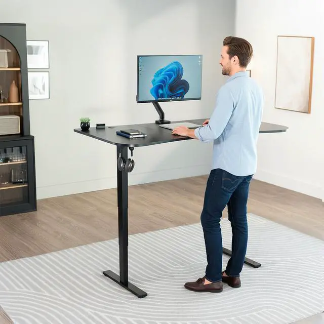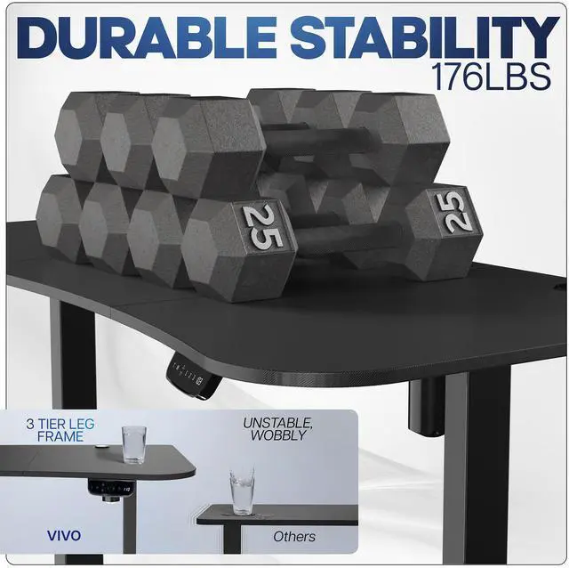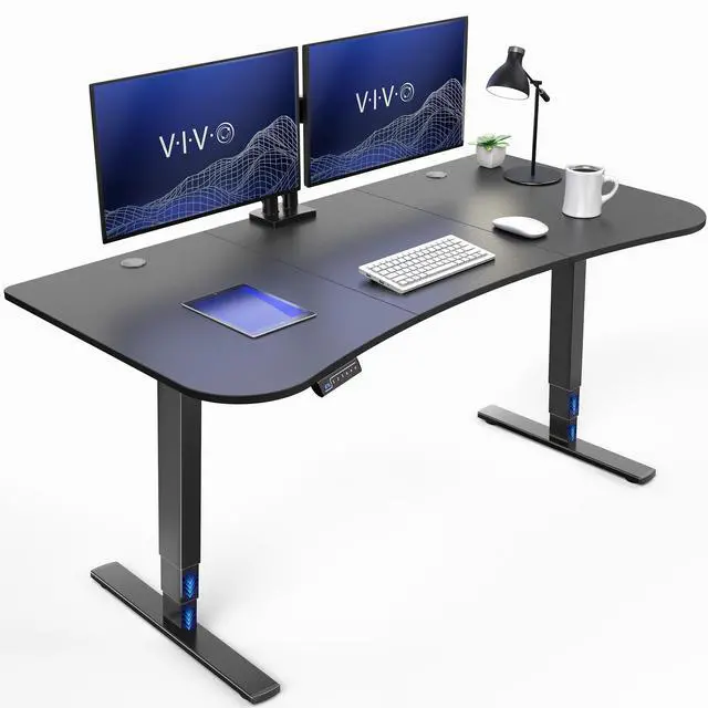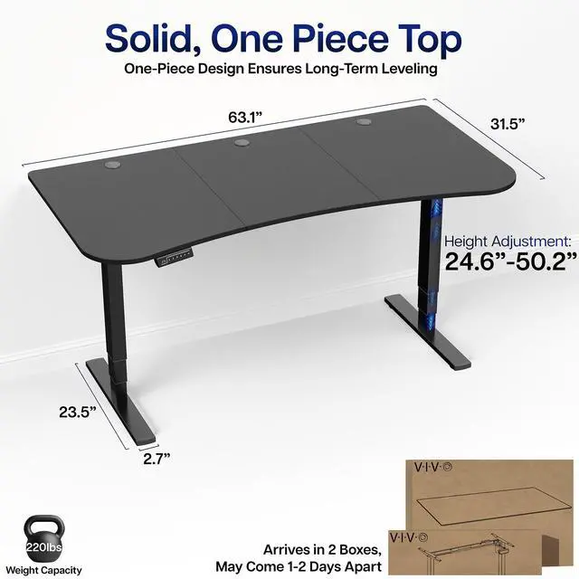 Transform your workstation to accommodate an active work life with the Black Carbon Fiber / Black 63" x 32" Electric Desk (DESK-KIT-2EBR) from VIVO! Find that healthy balance between sitting and standing throughout the long work day with electric adjustment, 3-stage telescopic legs for extra height, and an elegant touch-screen controller featuring memory presets. With a frame constructed of solid steel, this desk supports up to 220 lbs and is built to last. The table top has a curved, modern shape with cable management openings and comes packaged in 3 sections. All hardware is provided to get the desk frame put together and installed to the desktop in no time!