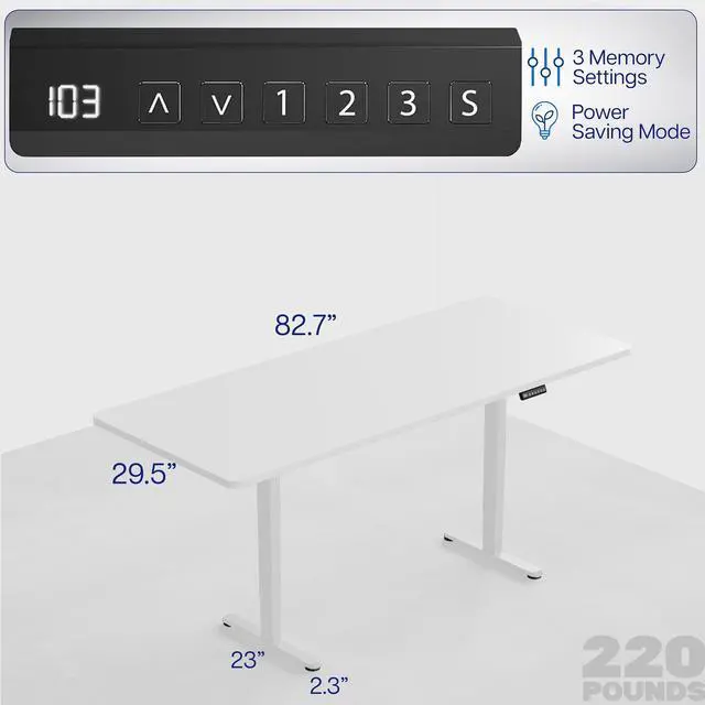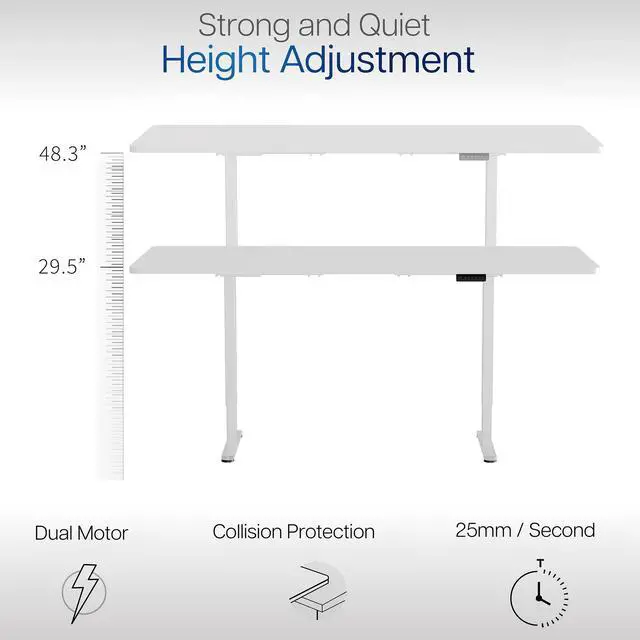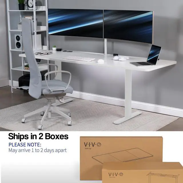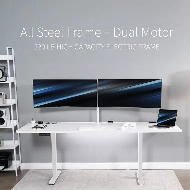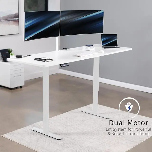 Transform your workstation to accommodate an active work life with the White 83" x 30" Dual Motor Electric Desk (DESK-KIT-E2W84-30W) from VIVO! Finding a healthy balance between sitting and standing throughout the long work day is made possible with electric height adjustment, telescopic legs, and a push-button control panel featuring 3 memory presets. The spacious, extra-deep table top provides room for multi-monitor setups and important supplies so you can organize your workspace to fit your preferred layout. With a frame constructed of solid steel, this desk supports up to 220 lbs and is built to last. All hardware and instructions are provided, so you can get your new workstation assembled and taking you to new heights!