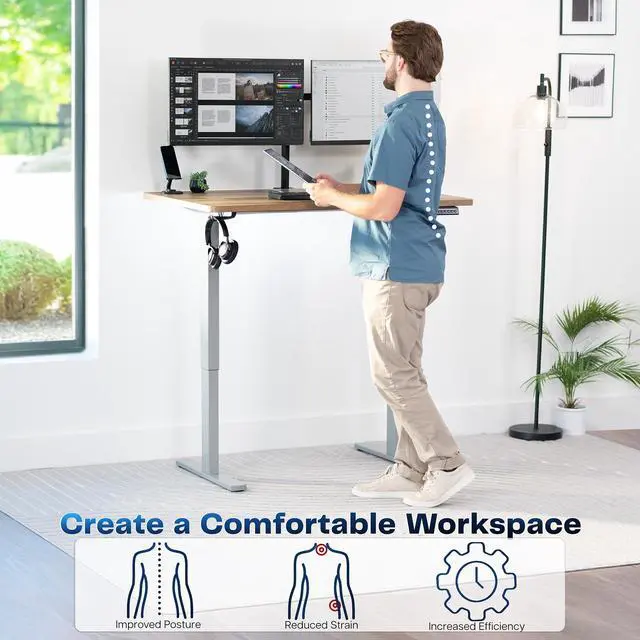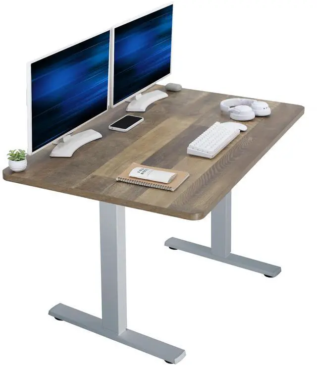 Transform your workstation to accommodate an active work life with the Reclaimed Wood / Gray 48" x 30" Electric Desk (DESK-KIT-1G5P) from VIVO! Finding a healthy balance between sitting and standing throughout the long work day is made possible with electric height adjustment, telescopic legs, and a simple push-button controller featuring 4 memory presets. The extra deep table top provides room for dual-monitor setups and important supplies so you can organize your workspace to fit your desired layout. With a frame constructed of solid steel, this desk supports up to 220 lbs and is built to last. All hardware and instructions are provided, so you can get your new workstation assembled and experience your very own standing desk in no time!