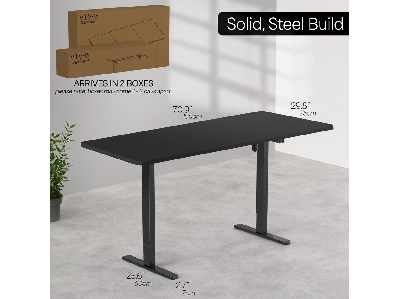 Spacious 3-Piece 71" Top: The large 70.9" x 29.5" table provides a spacious surface with extra depth for monitors, workspace accessories, supplies, and decor. The top is made of sturdy particle board, creating a smooth and scratch-resistant surface