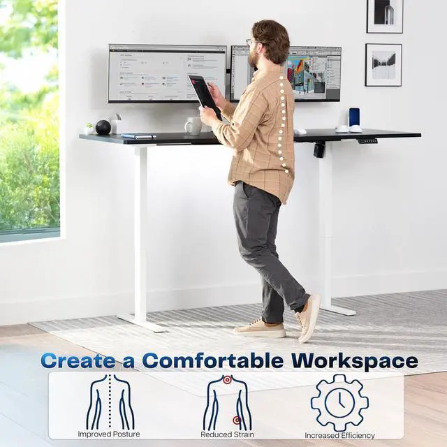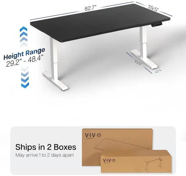 Transform your workstation to accommodate an active work life with the Black / White 83" x 30" Electric Desk (DESK-KIT-1W8B) from VIVO! Finding a healthy balance between sitting and standing throughout the long work day is made possible with electric height adjustment, telescopic legs, and a memory control panel. The spacious table top provides room for multi-monitor setups and important supplies so you can organize your workspace to fit your desired layout. With a frame constructed of solid steel, this desk supports up to 220 lbs and is built to last. All hardware and instructions are provided, so you can get your new workstation assembled and taking you to new heights!