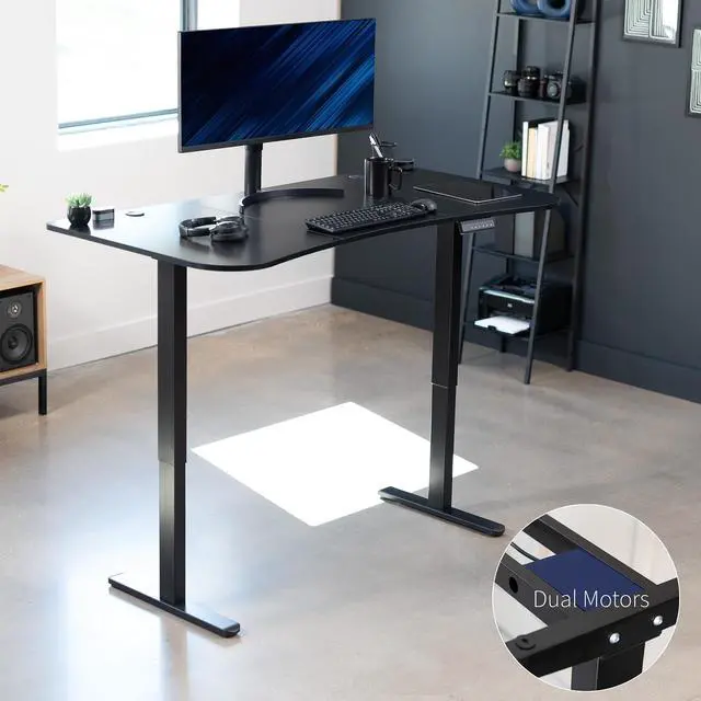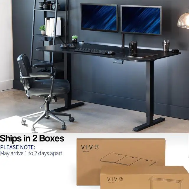Transform your workstation to accommodate an active work life with the Black Carbon Fiber / Black 63" x 32" Dual Motor Electric Desk (DESK-KIT-E2B1R) from VIVO! Find that healthy balance between sitting and standing throughout the long work day with electric height adjustment, telescopic legs, and a simple push-button controller featuring 3 memory presets. With a frame constructed of solid steel, this desk supports up to 220 lbs and is built to last. The table top comes packaged in 3 sections, and all hardware is provided to get your desk frame put together and installed to your desktop in no time!