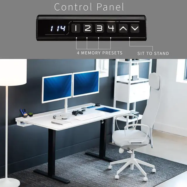 Transform your workstation to accommodate an active work life with the White / Black 60 x 30 Electric Desk with Concealed Cable Table Top and Full-Size Pad (DESK-KIT-1B6-P3W) from VIVO! Find that healthy balance between sitting and standing throughout the long work day with electric height adjustment, telescopic legs, and a simple push-button controller featuring memory presets. With a frame constructed of solid steel, this desk supports up to 176 lbs and is built to last. The table top features a built-in rear cable management system along with a full-size desk pad for edge-to-edge protection. It comes in 3 sections for easy assembly, and all hardware is provided to get your desk frame put together and installed to your desktop in no time!