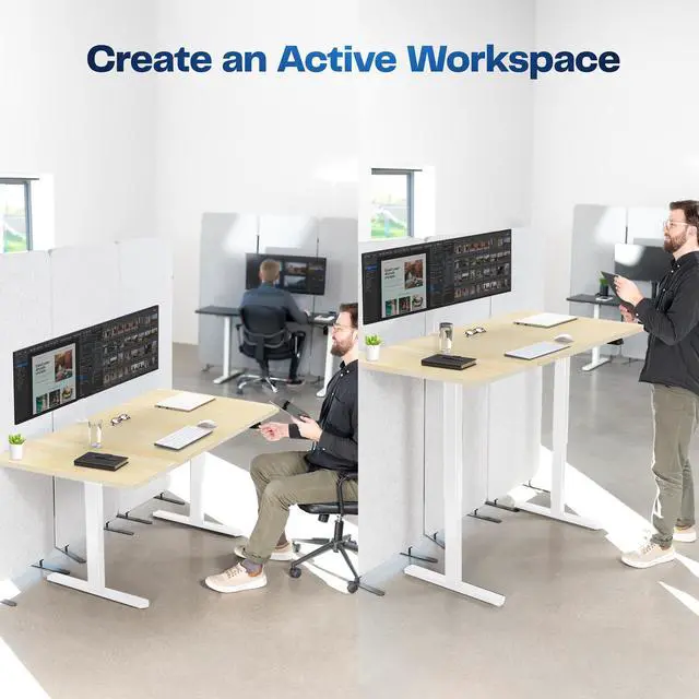 Transform your workstation to accommodate an active work life with the Light Wood / White 60" x 30" Electric Desk (DESK-KIT-0W6C) from VIVO! Finding a healthy balance between sitting and standing throughout the long work day is made possible with electric height adjustment, telescopic legs, and a simple 2-button control panel. The spacious table top provides room for dual monitor setups and important supplies so you can organize your workspace to fit your preferred layout. With a frame constructed of solid steel, this desk supports up to 154 lbs and is built to last. All hardware and instructions are provided, so you can get your new workstation assembled and taking you to new heights!