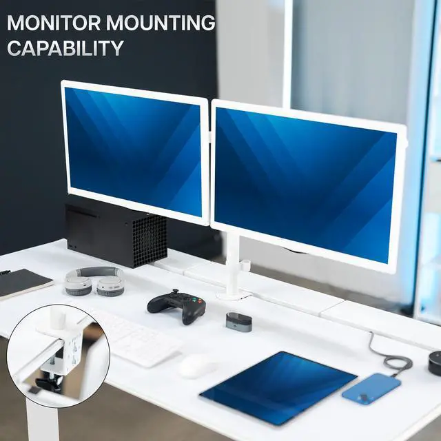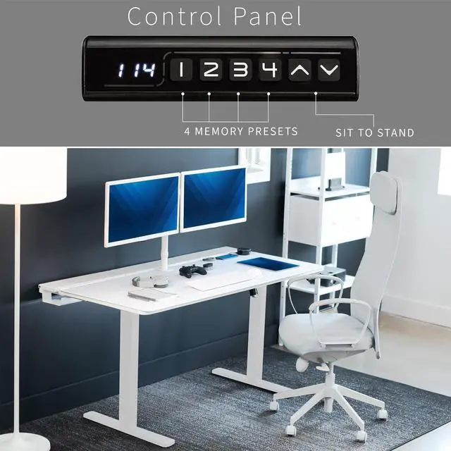 Transform your workstation to accommodate an active work life with the White 60 x 30 Electric Desk with Concealed Cable Table Top and Full-Size Pad (DESK-KIT-1W6-P3W) from VIVO! Find that healthy balance between sitting and standing throughout the long work day with electric height adjustment, telescopic legs, and a simple push-button controller featuring memory presets. With a frame constructed of solid steel, this desk supports up to 176 lbs and is built to last. The table top features a built-in rear cable management system along with a full-size desk pad for edge-to-edge protection. It comes in 3 sections for easy assembly, and all hardware is provided to get your desk frame put together and installed to your desktop in no time!