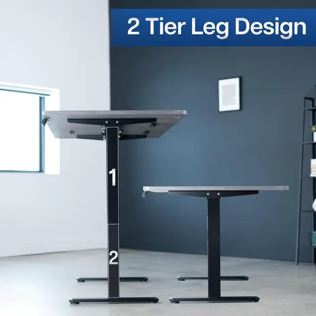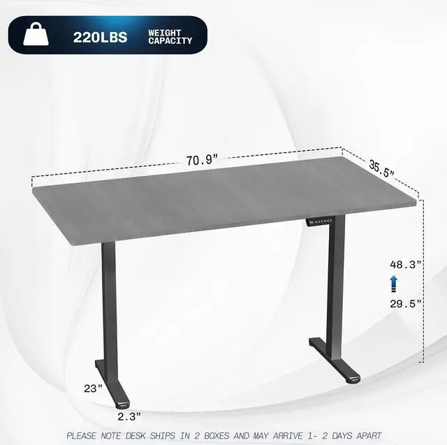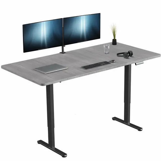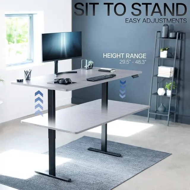 Transform your workstation to accommodate an active work life with the Dark Gray / Black 71" x 36" Dual Motor Electric Desk (DESK-KIT-E2B7G-36) from VIVO! Finding a healthy balance between sitting and standing throughout the long work day is made possible with electric height adjustment, telescopic legs, and a push-button control panel featuring 3 memory presets. The spacious, extra-deep table top provides room for multi-monitor setups and important supplies so you can organize your workspace to fit your preferred layout. With a frame constructed of solid steel, this desk supports up to 220 lbs and is built to last. All hardware and instructions are provided, so you can get your new workstation assembled and taking you to new heights!