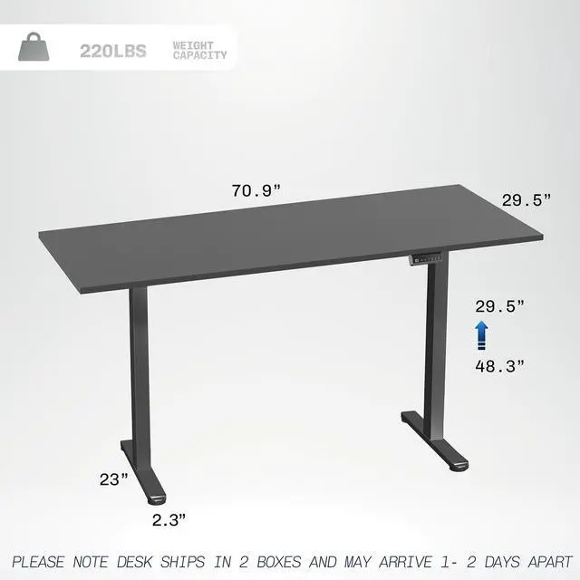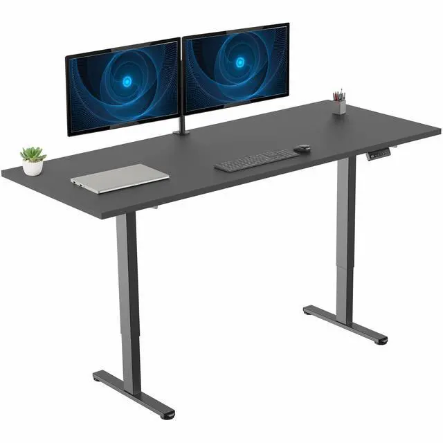 Transform your workstation to accommodate an active work life with the Black 71" x 30" Dual Motor Electric Desk with Square Corner Top (DESK-KIT-E2B71S-B) from VIVO! Finding a healthy balance between sitting and standing throughout the long work day is made possible with electric height adjustment, telescopic legs, and a push-button control panel featuring 3 memory presets. The spacious, extra-deep table top provides room for multi-monitor setups and important supplies so you can organize your workspace to fit your preferred layout. With a frame constructed of solid steel, this desk supports up to 220 lbs and is built to last. All hardware and instructions are provided, so you can get your new workstation assembled and taking you to new heights!