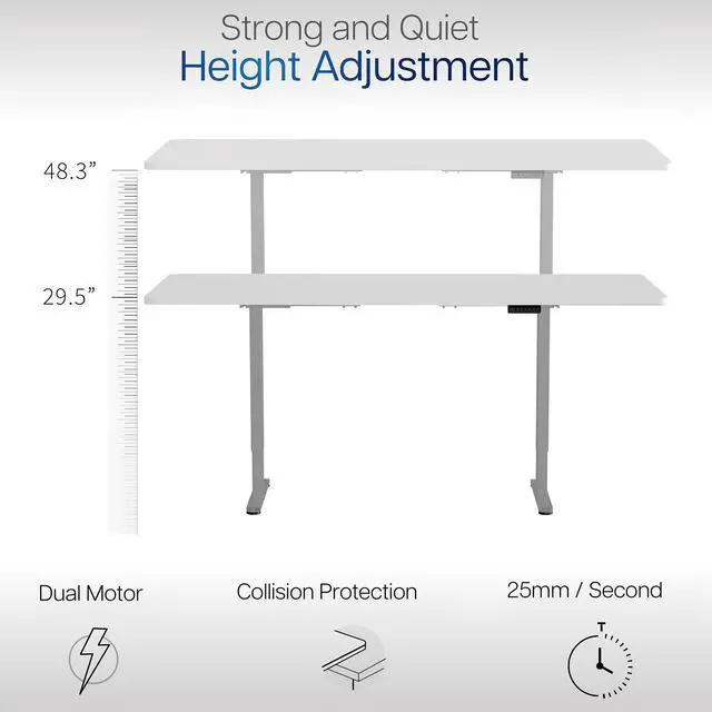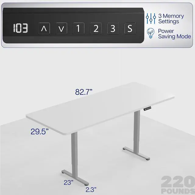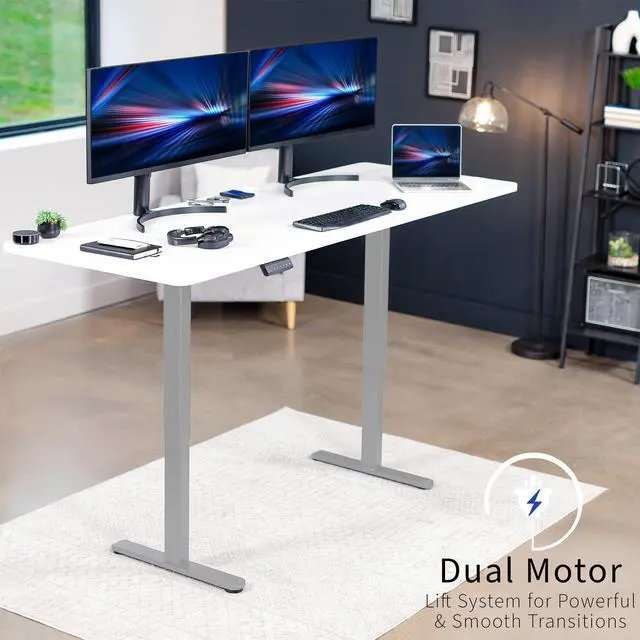 Transform your workstation to accommodate an active work life with the White / Gray 83" x 30" Dual Motor Electric Desk (DESK-KIT-E2G84-30W) from VIVO! Finding a healthy balance between sitting and standing throughout the long work day is made possible with electric height adjustment, telescopic legs, and a push-button control panel featuring 3 memory presets. The spacious, extra-deep table top provides room for multi-monitor setups and important supplies so you can organize your workspace to fit your preferred layout. With a frame constructed of solid steel, this desk supports up to 220 lbs and is built to last. All hardware and instructions are provided, so you can get your new workstation assembled and taking you to new heights!