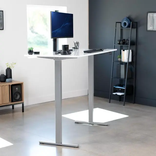 Transform your workstation to accommodate an active work life with the White Dry Erase / Gray 71" x 30" Dual Motor Electric Desk (DESK-KIT-E2G7WE) from VIVO! Finding a healthy balance between sitting and standing throughout the long work day is made possible with electric height adjustment, telescopic legs, and a push-button control panel featuring 3 memory presets. The spacious, extra-deep table top provides room for multi-monitor setups and important supplies so you can organize your workspace to fit your preferred layout. With a frame constructed of solid steel, this desk supports up to 220 lbs and is built to last. All hardware and instructions are provided, so you can get your new workstation assembled and taking you to new heights!