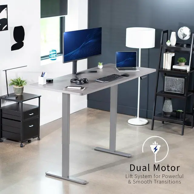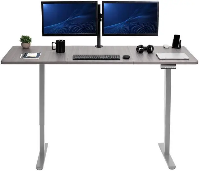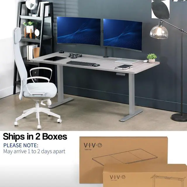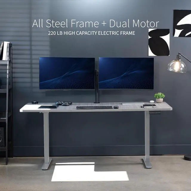 Transform your workstation to accommodate an active work life with the Dark Gray / Gray 71" x 30" Dual Motor Electric Desk (DESK-KIT-E2G7G) from VIVO! Finding a healthy balance between sitting and standing throughout the long work day is made possible with electric height adjustment, telescopic legs, and a push-button control panel featuring 3 memory presets. The spacious, extra-deep table top provides room for multi-monitor setups and important supplies so you can organize your workspace to fit your preferred layout. With a frame constructed of solid steel, this desk supports up to 220 lbs and is built to last. All hardware and instructions are provided, so you can get your new workstation assembled and taking you to new heights!