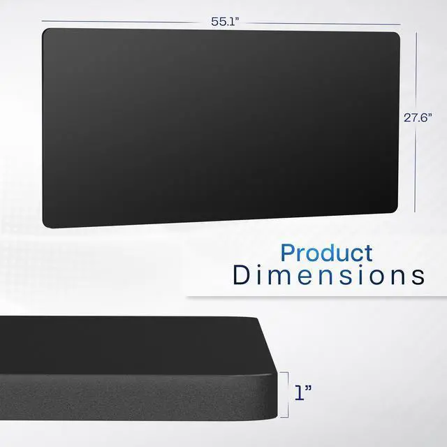 Find the perfect table top solution for your standing desk frame with Black 55" x 28" Table Top (DESK-TOP55-28B) from VIVO! Featuring a solid particle board surface in a modern black color, this product provides the finishing touch to your adjustable workstation. Go from sitting to standing with all of your equipment and accessories safely resting on this sturdy surface. Compatible with both manual and electric frames measuring 35" to 54" in length, this extra-wide table top gives you options! Whether you're creating your very first sit-to-stand workstation or you need a replacement part, this desk surface was built to last! All instructions are provided to get your new platform attached to your current desk frame in no time!