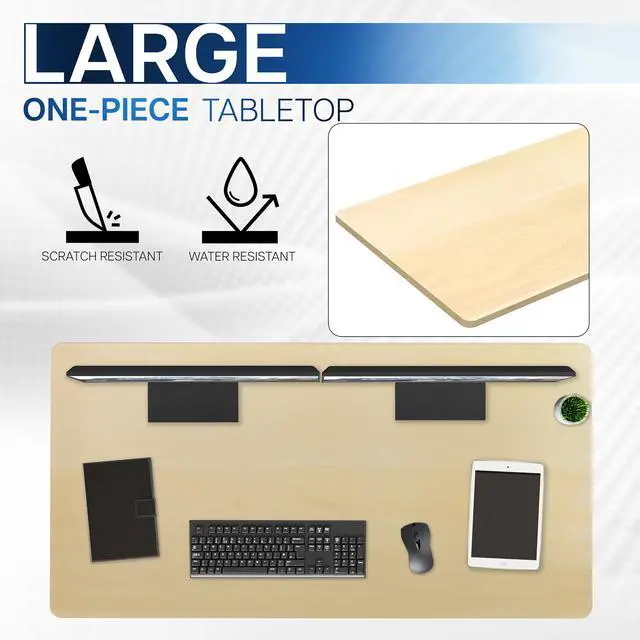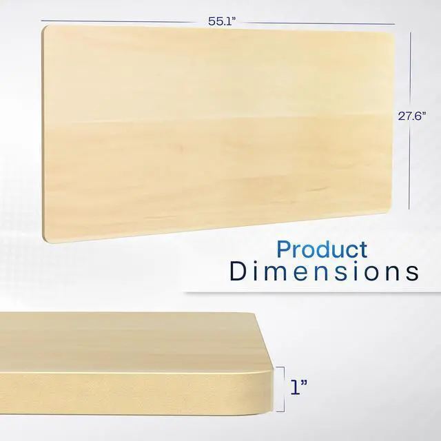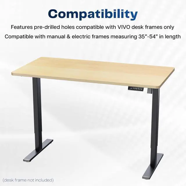 Find the perfect table top solution for your standing desk frame with Light Wood 55" x 28" Table Top (DESK-TOP55-28C) from VIVO! Featuring a solid particle board surface in a modern black color, this product provides the finishing touch to your adjustable workstation. Go from sitting to standing with all of your equipment and accessories safely resting on this sturdy surface. Compatible with both manual and electric frames measuring 35" to 54" in length, this extra-wide table top gives you options! Whether you're creating your very first sit-to-stand workstation or you need a replacement part, this desk surface was built to last! All instructions are provided to get your new platform attached to your current desk frame in no time!