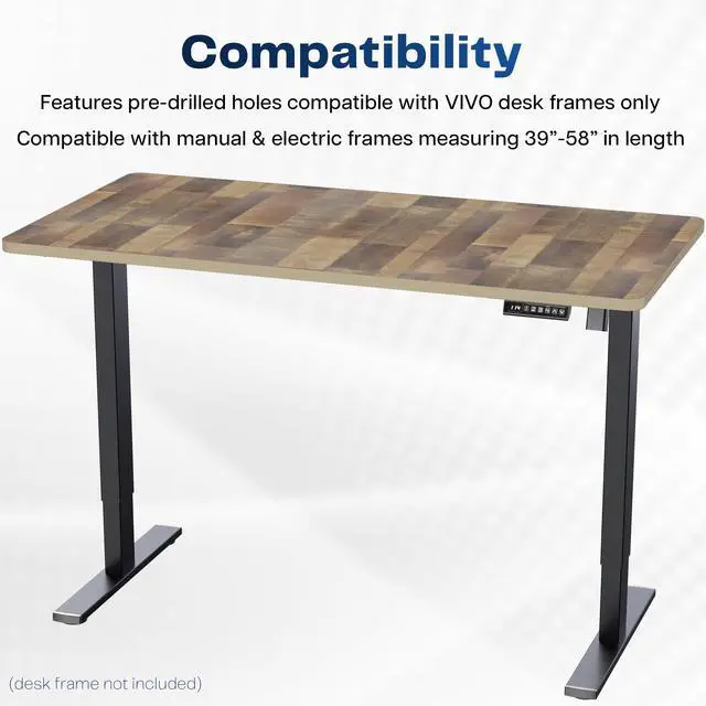 Find the perfect table top solution for your standing desk frame with Reclaimed Wood 60" x 30" Table Top (DESK-TOP60-30P) from VIVO! Featuring an extra spacious surface in a modern dark gray color, this product provides the finishing touch to your adjustable workstation. Go from sitting to standing with all of your equipment and accessories safely resting on this sturdy platform. Compatible with both manual and electric frames measuring 39" to 58" in length, this extra-wide table top gives you options! Whether you're creating your very first sit to stand workstation or you need a replacement part, this desk surface was built to last! All hardware and instructions are provided to get your new platform assembled and attached to your current desk frame in no time!
