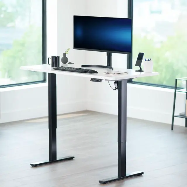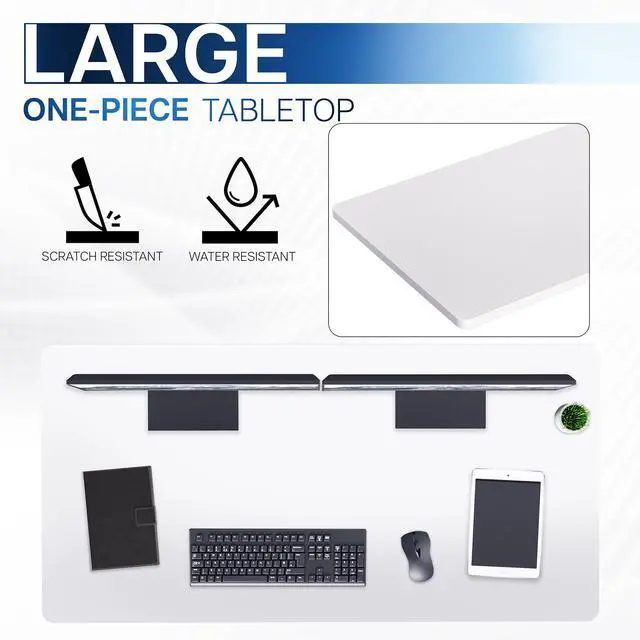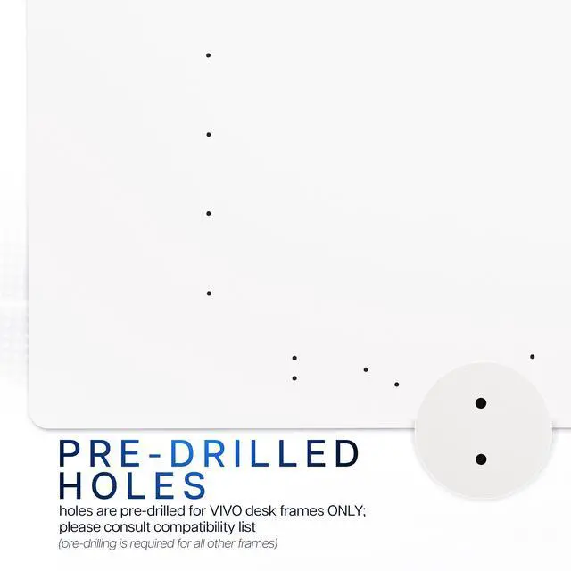 Find the perfect table top solution for your standing desk frame with White 55" x 28" Table Top (DESK-TOP55-28W) from VIVO! Featuring a solid particle board surface in a modern black color, this product provides the finishing touch to your adjustable workstation. Go from sitting to standing with all of your equipment and accessories safely resting on this sturdy surface. Compatible with both manual and electric frames measuring 35" to 54" in length, this extra-wide table top gives you options! Whether you're creating your very first sit-to-stand workstation or you need a replacement part, this desk surface was built to last! All instructions are provided to get your new platform attached to your current desk frame in no time!