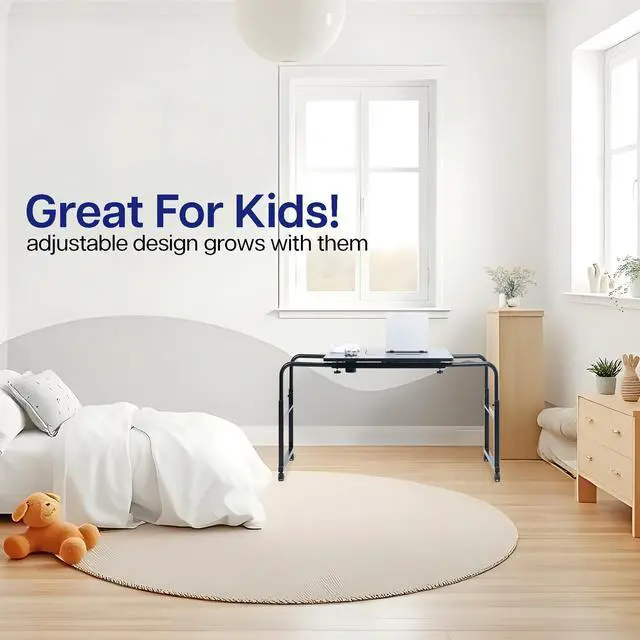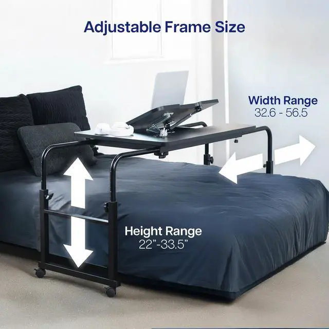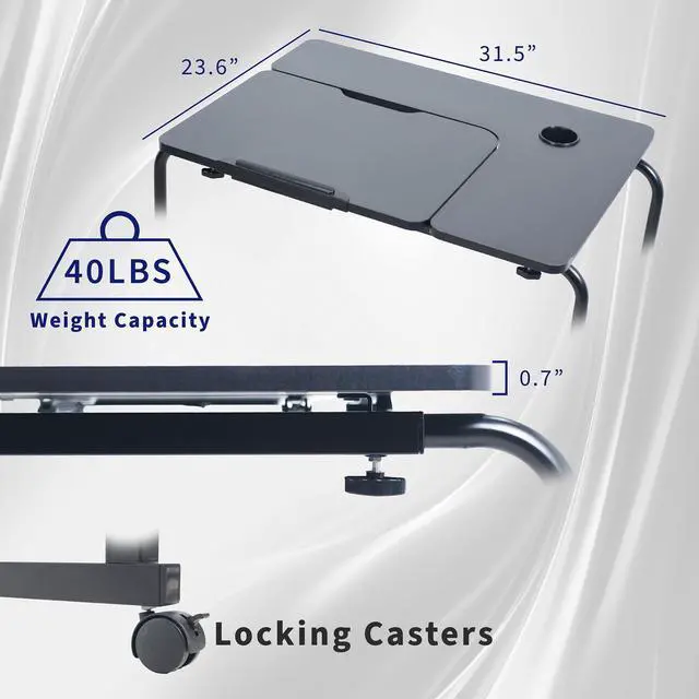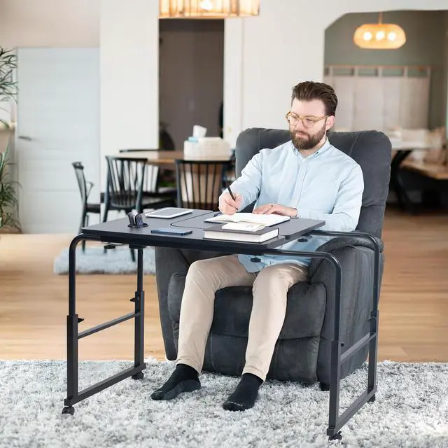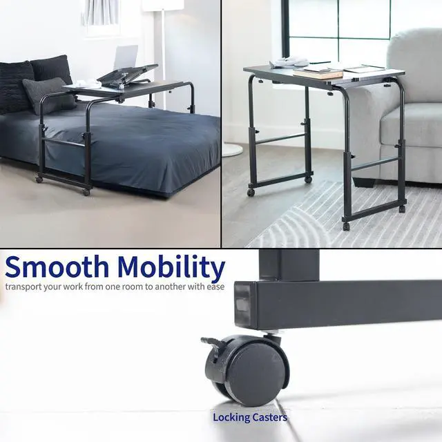 Work from the comfort of your couch or recliner with the Black Mobile Lounge Desk (DESK-V202B) from VIVO! Ergonomically designed for adjustability and practicality, this innovative desk is recommended for people of all ages. Height and length adjustment allow the frame to easily fit around your bed or sofa, and the tilting platform is ideal for drawing and typing. Heavy-duty casters provide smooth mobility on a variety of floor types, letting you easily move this table wherever needed. All hardware and instructions are provided for smooth assembly.