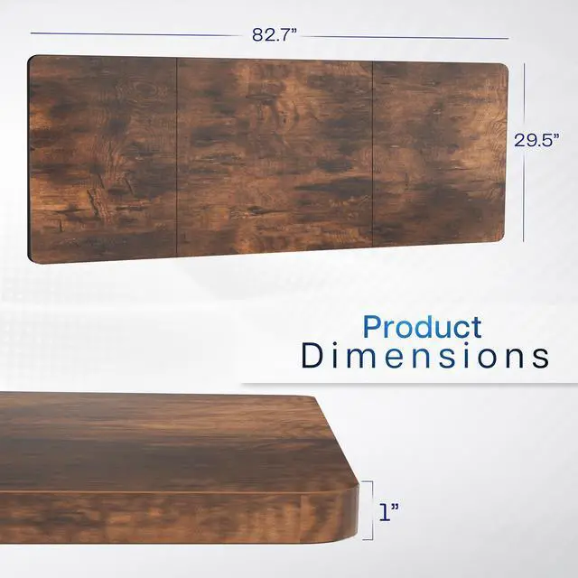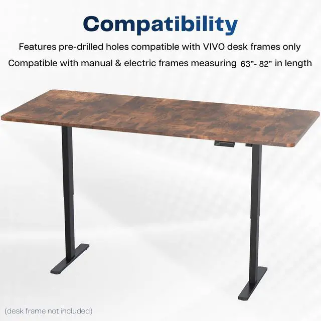 Find the perfect table top solution for your standing desk frame with the Vintage Brown 83" x 30" Table Top (DESK-TOP84-30N) from VIVO! Featuring an extra spacious surface in a modern black color, this product provides the finishing touch to your adjustable workstation. Go from sitting to standing with all of your equipment and accessories safely resting on this sturdy platform. Compatible with both manual and electric frames measuring 63 to 82 in length, this extra-wide table top gives you options! Whether you're creating your very first sit-to-stand workstation or you need a replacement part, this desk surface was built to last! All hardware and instructions are provided to get your new platform assembled and attached to your current desk frame in no time!