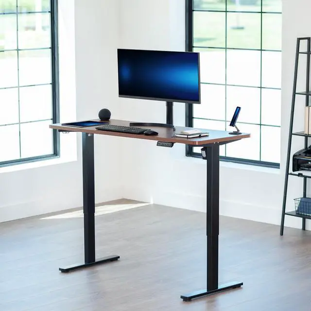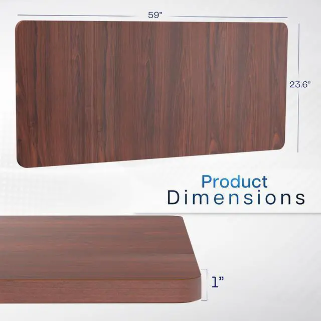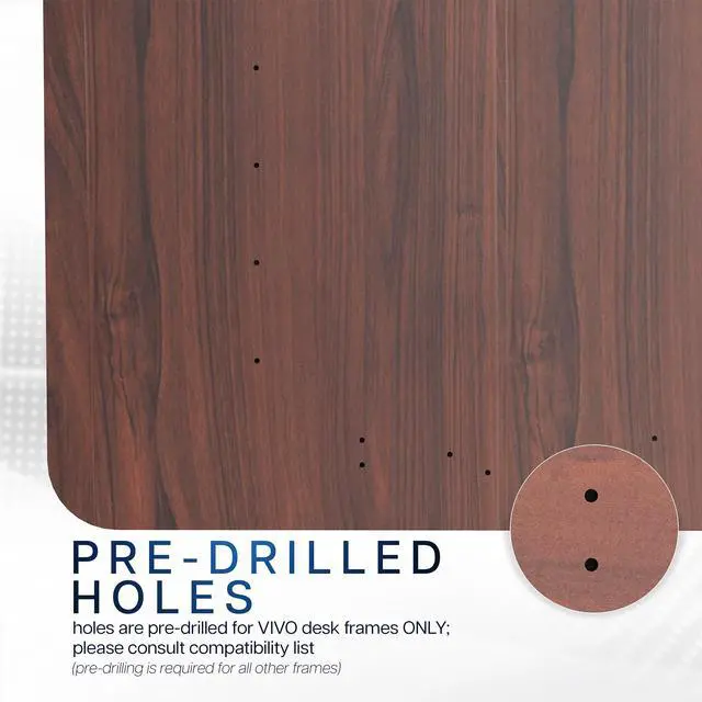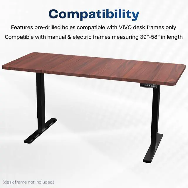 Find the perfect tabletop solution for your standing desk frame with the DESK-TOP60-24D from VIVO! Featuring sturdy particle board in a rich dark walnut color, this product provides the finishing touch to your adjustable workstation. Go from sitting to standing with all of your equipment and accessories safely resting on this sturdy surface. Compatible with both manual and electric frames measuring 39 to 58 in length, this table top gives you options! Whether you're creating your very first sit-to-stand workstation or you need a replacement part, this desk surface was built to last! All of the instructions are provided to get your new platform attached to your current desk frame in no time!