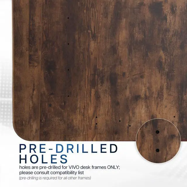 Find the perfect tabletop solution for your standing desk frame with the DESK-TOP60-24N from VIVO! Featuring sturdy particle board in a rustic vintage brown color, this product provides the finishing touch to your adjustable workstation. Go from sitting to standing with all of your equipment and accessories safely resting on this sturdy surface. Compatible with both manual and electric frames measuring 39 to 58 in length, this table top gives you options! Whether you're creating your very first sit-to-stand workstation or you need a replacement part, this desk surface was built to last! All of the instructions are provided to get your new platform attached to your current desk frame in no time!