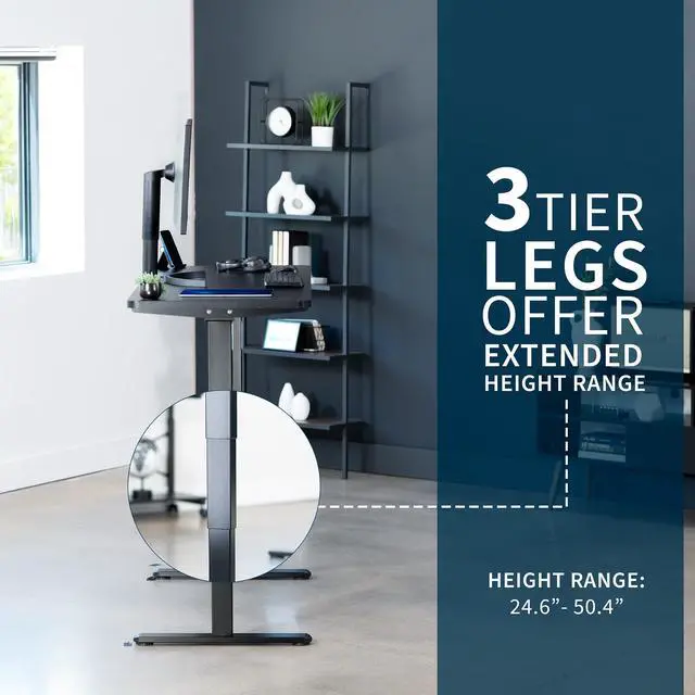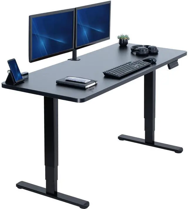 Transform your workstation to accommodate an active work life with the Black 60" x 24" Dual Motor Electric Desk (DESK-KIT-2B6B) from VIVO! Finding a healthy balance between sitting and standing throughout the long work day is made possible with electric height adjustment, telescopic legs, and a simple push-button controller featuring 3 memory presets. The spacious table top provides room for dual monitor setups and important supplies so you can organize your workspace to fit your preferred layout. With a frame constructed of solid steel, this desk supports up to 220 lbs and is built to last. All hardware and instructions are provided, so you can get your new workstation assembled and taking you to new heights!