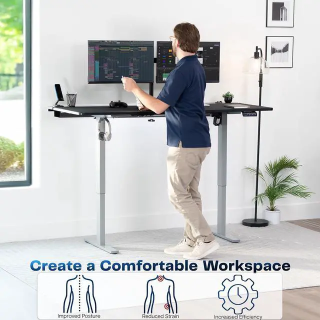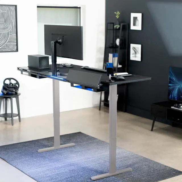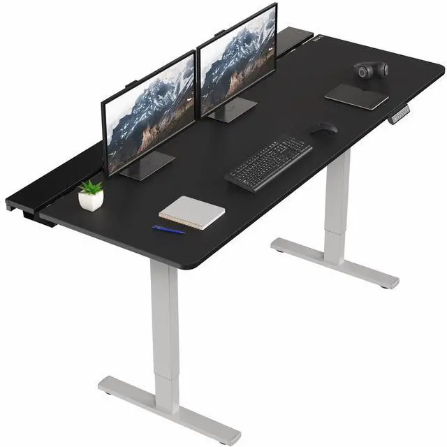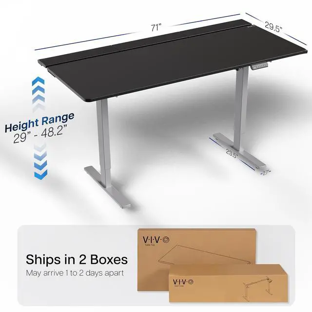 Transform your workstation to accommodate an active work life with the Black / Gray 71" x 30" Electric Desk with Concealed Cable Table Top and Full-Size Pad (DESK-KIT-1G6-P3B-71) from VIVO! Find that healthy balance between sitting and standing throughout the long work day with electric height adjustment, telescopic legs, and a simple push-button controller featuring memory presets. With a frame constructed of solid steel, this desk supports up to 220 lbs and is built to last. The table top features a built-in rear cable management system along with a full-size desk pad for edge-to-edge protection. It comes in 3 sections for easy assembly, and all hardware is provided to get your desk frame put together and installed to your desktop in no time!