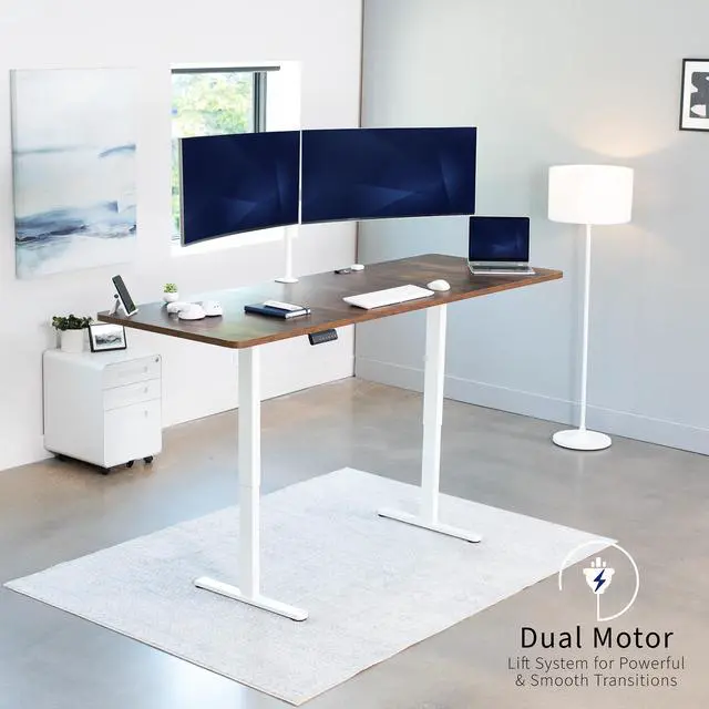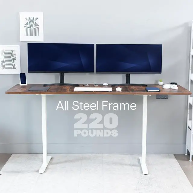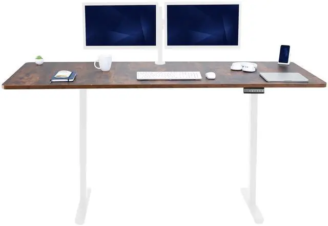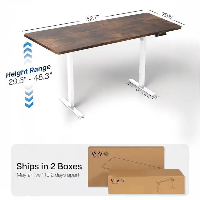 Transform your workstation to accommodate an active work life with the Vintage Brown / White 83" x 30" Dual Motor Electric Desk (DESK-KIT-E2W84-30N) from VIVO! Finding a healthy balance between sitting and standing throughout the long work day is made possible with electric height adjustment, telescopic legs, and a push-button control panel featuring 3 memory presets. The spacious, extra-deep table top provides room for multi-monitor setups and important supplies so you can organize your workspace to fit your preferred layout. With a frame constructed of solid steel, this desk supports up to 220 lbs and is built to last. All hardware and instructions are provided, so you can get your new workstation assembled and taking you to new heights!