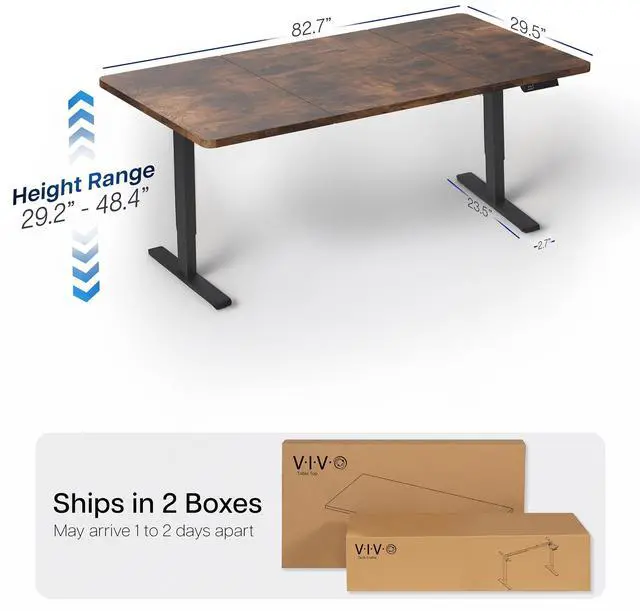 Transform your workstation to accommodate an active work life with the Vintage Brown/Black 83" x 30" Electric Desk (DESK-KIT-1B8N) from VIVO! Finding a healthy balance between sitting and standing throughout the long work day is made possible with electric height adjustment, telescopic legs, and a memory control panel. The spacious table top provides room for multi-monitor setups and important supplies so you can organize your workspace to fit your desired layout. With a frame constructed of solid steel, this desk supports up to 220 lbs and is built to last. All hardware and instructions are provided, so you can get your new workstation assembled and taking you to new heights!