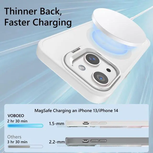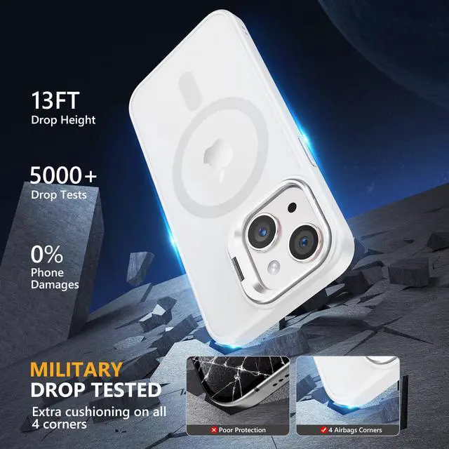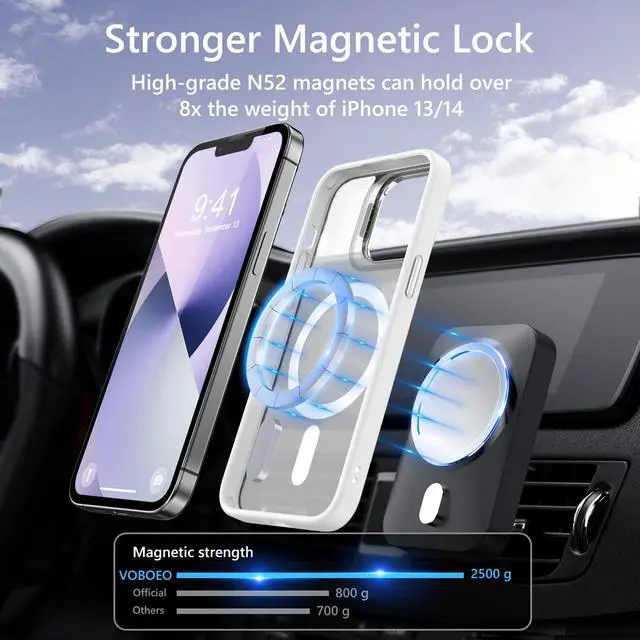Real Tested Ultra Magnetic SuctionThis iPhone 13 Case & iPhone 14 Case have built-in 1.5mm thick N52 magnet. After a experimental testing. The data show It has a magnetic attraction of 1500g/3.3bl, which is nearly 7 times stronger than normal magnetic case on the market. Attaches securely to all Magnetic accessories such as wireless chargers, wallets, car mounts and will not come off no matter how much it is rotated or shake.