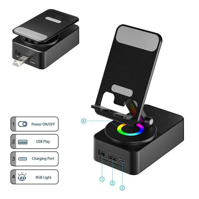 4-in-1 phone holder with bluetooth speaker frees your hands to enjoy music, videos and calls easily.