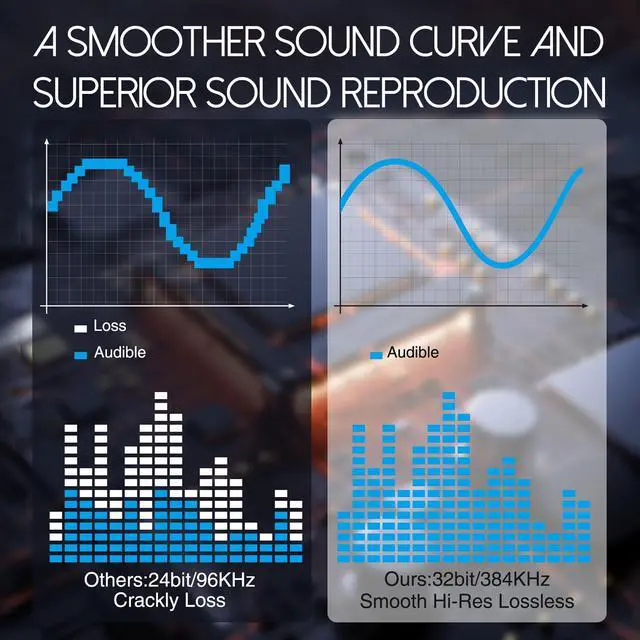 Say goodbye to compromise with our adapter's support for 32bit 384KHz lossless playback. Rediscover your favorite tracks in pristine quality, as every nuance of the music is faithfully reproduced without compression artifacts.