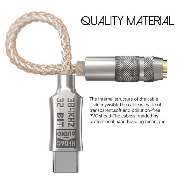 Elevate your audio experience with our Type C DAC to 3.5mm headphone jack adapter. Designed for high-resolution sound, it features a Realtek ALC5686 chip for exceptional clarity. Enjoy lossless playback at 32bit 384KHz, while its premium stainless steel construction ensures durability. Compatible with smartphones, laptops, and tablets, it's the perfect companion for audiophiles on the move.