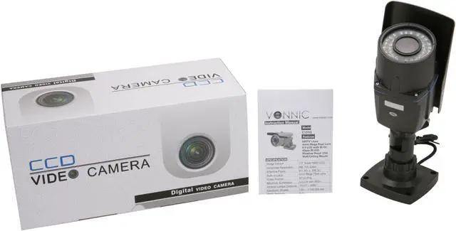 | Features | Signal System: NTSC Minimum illumination: 0.0 LUX (IR ON) S/N Ratio: More than 48dB White Balance: Auto AGC: Auto Gamma Correction: 0.45 Water Resistance: Weather Proof IP66 Motion Detection: Auto Infrared LED: 42Pcs IR LED (5mm) IR Distance: 150ft (45m) View Angle: 500mA Product Dimension (LxWxH): 9.8" x 3.5" x 4.9" |